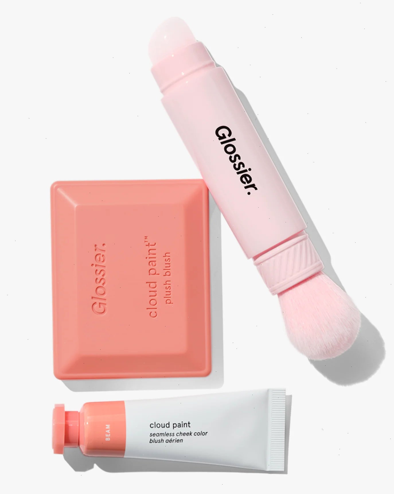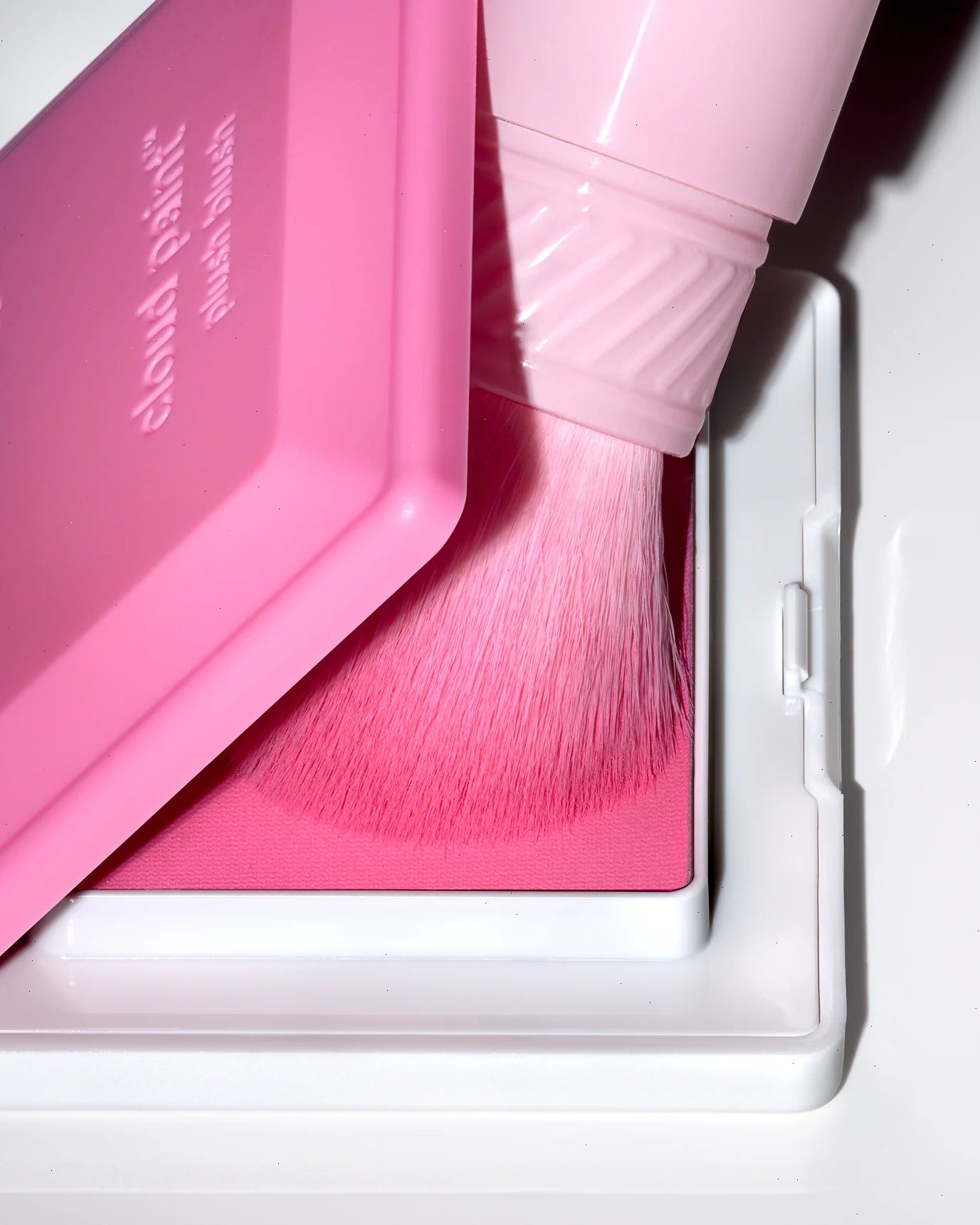 A dual-ended, portable and retractable synthetic brush designed for our powder and gel-cream blushes. The tapered brush end is perfect for blending Cloud Paint Plush Blush. While the opposite end mimics fingertips with a soft and non-absorbent silicone tip, making it perfect for patting on Cloud Paint!